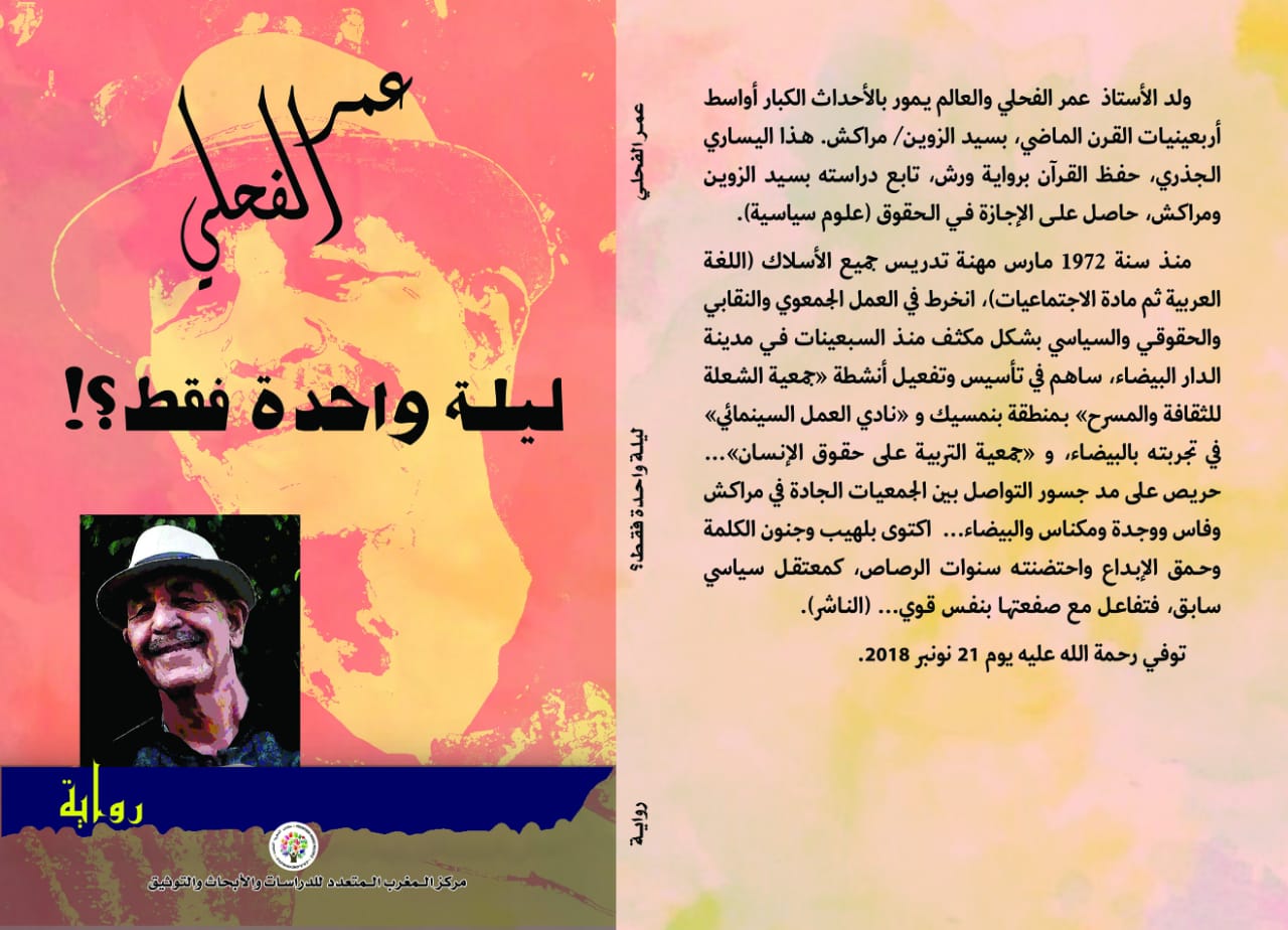تصدر، السبت 28 نونبر، رواية ” ليلة واحدة فقط؟!”، من قبل ناشرها، مركز المغرب المتعدد للدراسات و الأبحاث و التوثيق، لكاتبها عمر الفحلي، الذي غادر الحياة أواخر نونبر 2018.