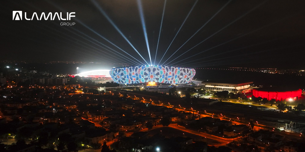 تُسخِّر مجموعة لام ألف خبراتها التقنية والمعمارية المتراكمة من أجل مواكبة احتضان المملكة المغربية لنهائيات كأس الأمم الإفريقية، التي انطلقت في 21 دجنبر 2025 وتتواصل إلى غاية 18 يناير 2026، واضعة نصب أعينها هدفا واضحا يتمثل في تحويل الملاعب الوطنية إلى معالم معمارية أيقونية، قادرة على فرض حضور بصري قوي ليلا، وتعزيز التجربة الحسية للجماهير داخل المدرجات وللمشاهدين عبر الشاشات.