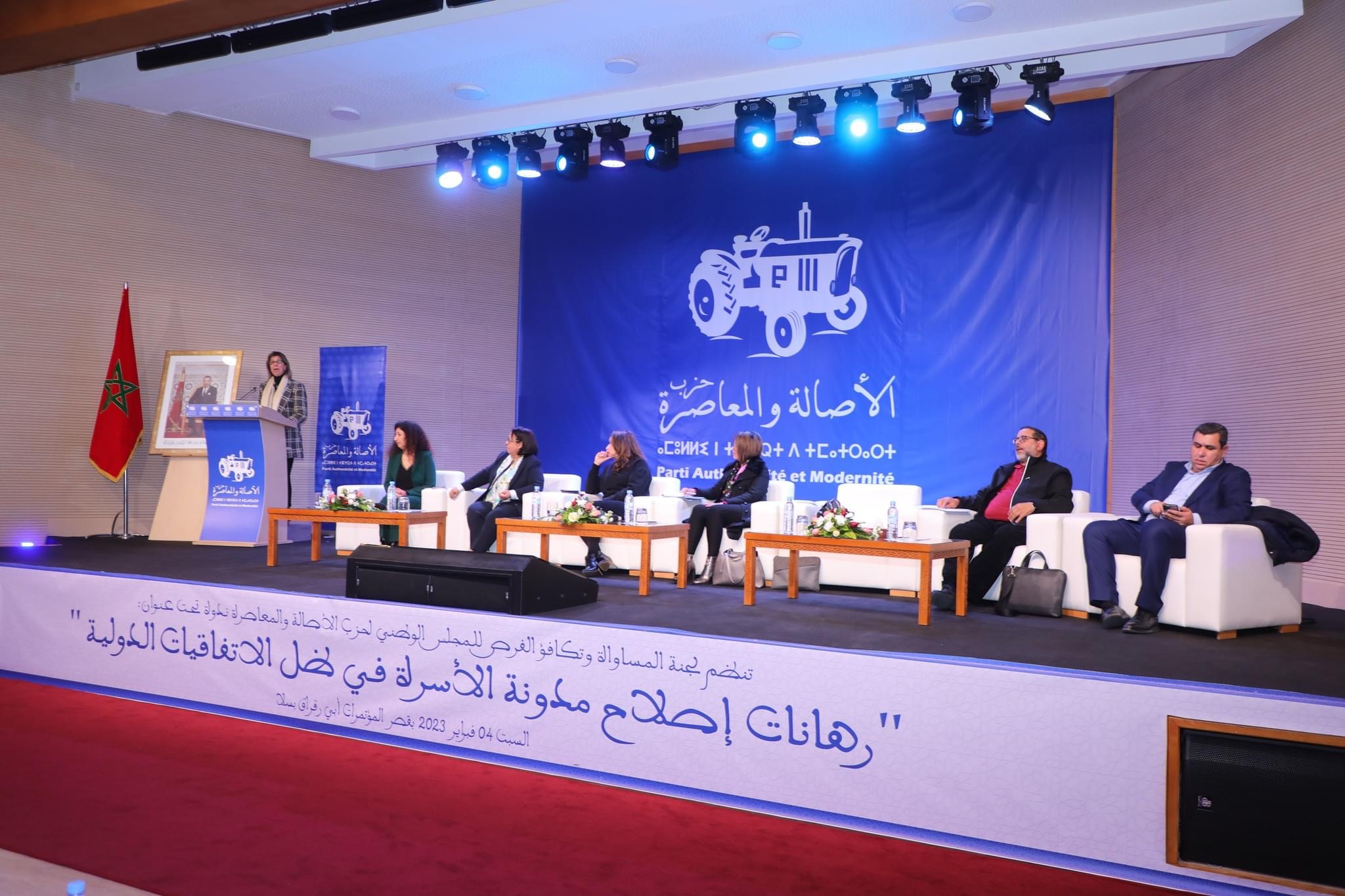 نظمت لجنة المساواة وتكافؤ الفرص التابعة للمجلس الوطني لحزب الأصالة والمعاصرة ندوة وطنية حول موضوع: «رهانات إصلاح مدونة الأسرة فيظل الاتفاقيات الدولية»، يومه السبت 04 فبراير 2023، بقصر المؤتمرات ابي رقراق بمدينة سلا.