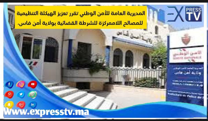قررت المديرية العامة للأمن الوطني تعزيز الهيكلة التنظيمية للمصالح اللاممركزة للشرطة القضائية بولاية أمن فاس، من خلال الارتقاء بها من فرق حضرية للشرطة القضائية (BUPJ) إلى فرق متكاملة للشرطة القضائية (BPJ)، مع ما يقتضيه ذلك من تدعيم لهذه المصالح الشرطية وتعزيز وسائلها المادية وحظيرة مركباتها.