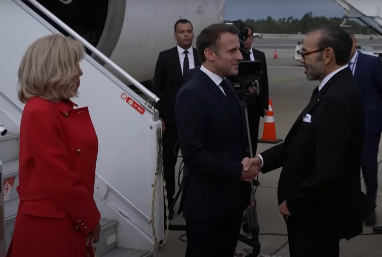 استقبل الملك محمد السادس اليوم الاثنين 28 أكتوبر 2024، الرئيس الفرنسي إيمانويل ماكرون بمطار الرباط سلا، وذلك في إطار زيارة الدولة التي يقوم بها الرئيس الفرنسي على رأس وفد هام يضم 122 شخصية، إلى المملكة تمتد لثلاثة أيام.