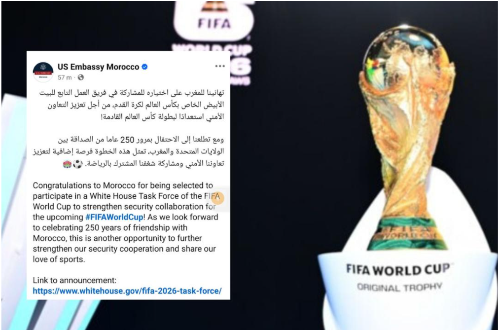 إختيار الأمن المغربي للمشاركة في تأمين مونديال أمريكا هو، بعبارة أوضح، اعتراف أمريكي ودولي صريح بنجاعة وقوة المؤسسة الأمنية المغربية. إنها شهادة “آيزو” من أعلى مستوى، تؤكد أن الأجهزة الأمنية والاستخباراتية المغربية باتت مرجعاً عالمياً يُستعان به في المهمات المعقدة. فبعد نجاحات أمننا في تجنيب عواصم أوروبية حمامات دم مؤكدة، وتأمينه لتظاهرات كبرى في دول شقيقة كقطر، ها هو اليوم يُستدعى ليكون جنباً إلى جنب مع كبريات الأجهزة الأمريكية لتأمين المونديال.