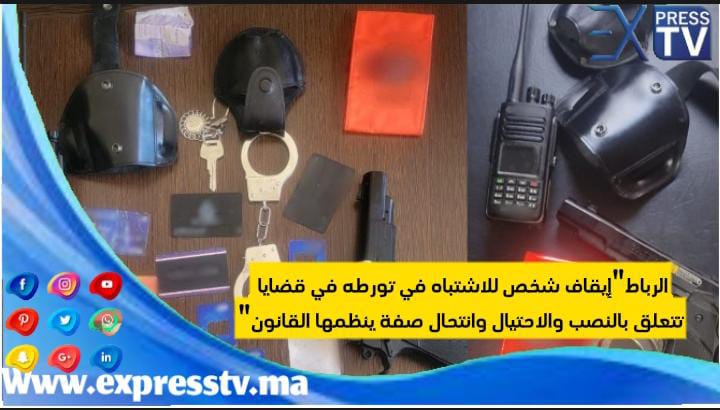 وجرى توقيف المشتبه فيه في حالة تلبس بانتحال صفة شرطي، وذلك من أجل تعريض تاجر للنصب والاحتيال بدعوى التدخل لفائدته من أجل إعفائه من واجبات تعشير بضائع مستوردة، حيث أسفرت عملية الجس التي أخضع لها بعين المكان عن حجز مجسم مسدس بلاستيكي وأصفاد حديدية مهربة، فضلا عن جهاز لاسلكي وشارة تعريفية تشبه تلك التي يستعملها عناصر الشرطة.