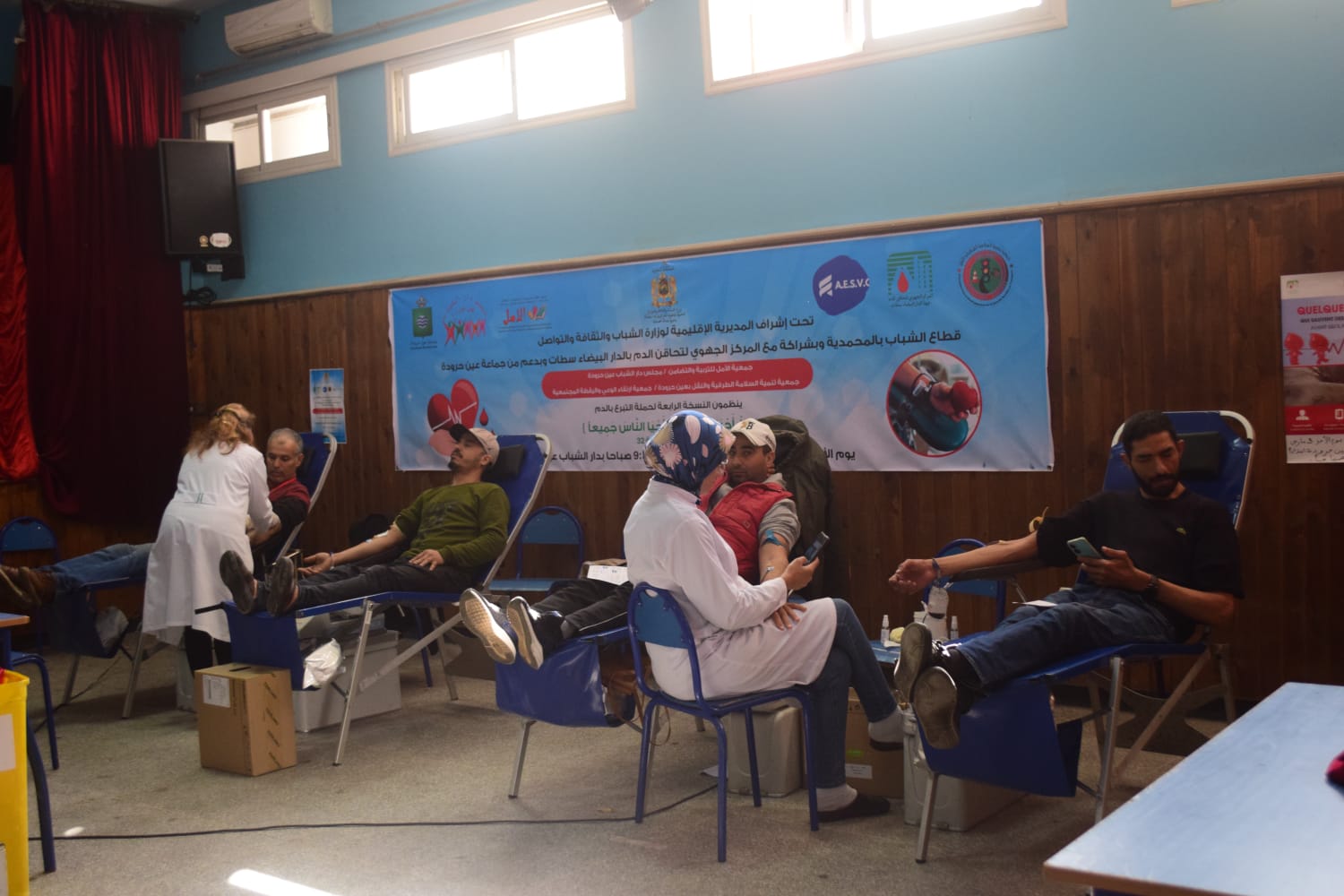 تمت بنجاح النسخة الرابعة لحملة التبرع بالدم التي نظمتها جمعية الأمل للتربية و التنمية و التضامن بالتعاون والتنسيق مع بعض فعاليات المجتمع المدني يوم الأحد الموافق 3 مارس 2024 في دار الشباب عين حرودة. شهدت الحملة تفاعلاً كبيرًا من قبل المواطنين والمواطنات الذين أبدوا استعدادًا كبيرًا للتبرع بالدم والمساهمة في إنقاذ حياة الآخرين.