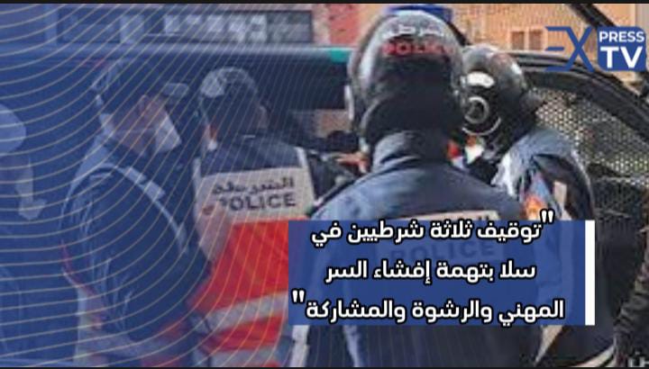 سلا..الفرقة الوطنية للشرطة القضائية قدمات هاد الصباح ثلاثة ديال الشرطيين(قائد حراس أمن موقوف ،عميد شرطة،ظابط امن)بسباب الاشتباه بتورطهم فقضية ديال إفشاء سر مهني والرشوة والمشاركة.