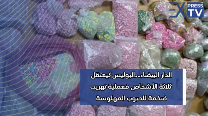 تمكنات الفرقة ديال مكافحة العصابات بالدار البيضاء باش يوقفو ثلاثة ديال الاشخاص مشتبه فيهم عندهم سيارة رباعية الدفع بالطريق الجديدة لقاو شحنة كبيرة من الحبوب المهلوسة(62 الف و 550 قرص).