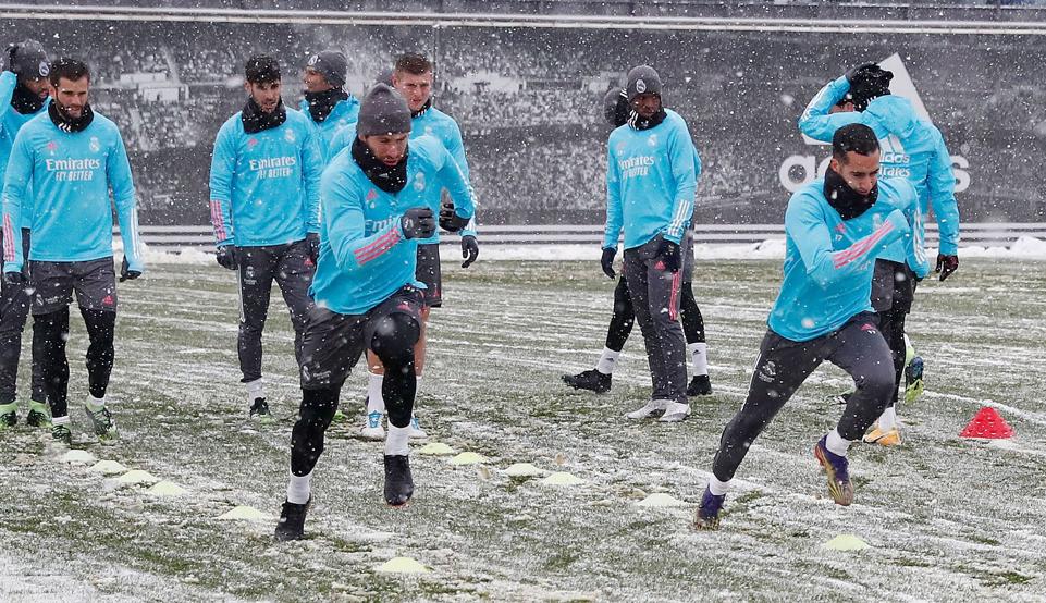 وتأخرت رحلة ريال مدريد إلى نابارا بشمال إسبانيا بعد أن انتظرت الطائرة التي تقل الفريق أربع ساعات على مدرج مطار باراخاس المغطى بالثلوج يوم الجمعة قبل إقلاعها في نهاية المطاف. وهبطت طائرة ريال مدريد في بامبلونا في منتصف الليل.