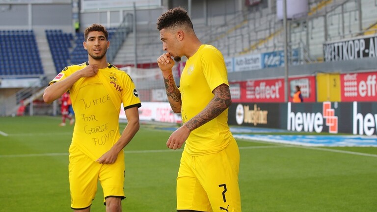 فبعد أن سجل النجم المغربي هدف بروسيا دورتموند الرابع في الدقيقة (85) في مرمى مضيفه بادربورن (6-1)، قام برفع قميصه ليكشف عن عبارة تأييد “العدالة لجورج فلويد”، مع الإشارة بيديه بالتضامن مع عائلة الأمريكي، لتنهال بعدها التعليقات المؤيدة لما قام به اللاعب صاحب الـ21 عاما.