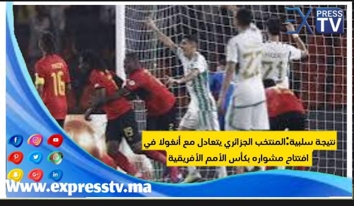 تعادل المنتخب الجزائري في مواجهته أمام المنتخب الأنغولي بنتيجة 1-1، في إطار الجولة الأولى من دور المجموعات في بطولة كأس الأمم الأفريقية.