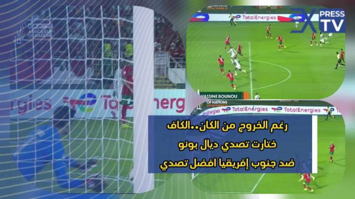 الاتحاد الإفريقي ديال كرة القدم (الكاف)اختار اللقطة اللي دار بونو في المقابلة ضد جنوب أفريقيا افضل تصدي لحراس المرمى في ثمن النهائي ديال كأس أمم إفريقيا اللي تقامت في كوت ديفوار .