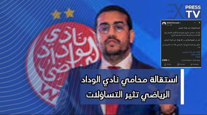 أعلن المحامي المهدي الزوات، والمنخرط بنادي الوداد الرياضي، استقالته من جميع الهياكل الإدارية للنادي، وذلك وفقًا لتدوينة نشرها قبل قليل على صفحته الشخصية على وسائل التواصل الاجتماعي.