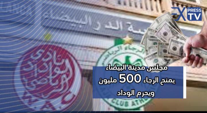 منح مجلس مدينة الدار البيضاء فريق الرجاء الرياضي مبلغ 500 مليون سنتيم كمنحة من المجلس للفريق الأخضر للعاصمة الاقتصادية وهو المبلغ الذي جعل محمد بودريقة، رئيس النادي يقدم رسالة شكر لنبيلة الرميلي، رئيسة مجلس مدينة الدار البيضاء على إنهاء هذا التحويل البنكي الذي ينتظره حساب “النسور” لشهور، لمساعدة الفريق في أزمته المالية.